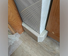 Способ монтажа: данный плинтус из вспененного ПВХ монтируется на монтажные клипсы. Клипсы устанавливаются к стене на саморезы, далее плинтус просто защелкивается на клипсы. Для одного изделия понадобится примерно 5-6 клипс. Углы и торцы оформляются запилом под 45° при помощи ножовки и стусла. Такой способ делает стыковку плинтуса практически незаметной, а композицию полностью монолитной. Подробнее о том, как правильно запилить плинтус читайте в этой статье.