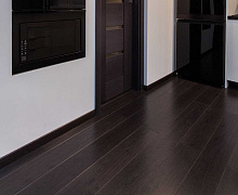МДФ плинтус от компании "Лука". Перекроет зазор между стеной и полом до 16 мм.