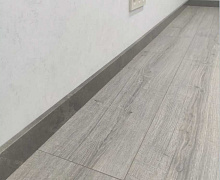 МДФ плинтус от компании "Лука". Перекроет зазор между стеной и полом до 16 мм.