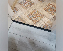 Способ монтажа: алюминиевый порожек крепится в проем между двумя напольными покрытиями на саморезы (идут в комплекте).