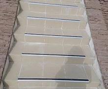 Способ монтажа: алюминиевый порожек без вставки крепится на ступени при помощи саморезов (идут в комплекте). Затем прорезиненную ПВХ вставку нужно нагреть строительным или обычным феном, либо подержать в горячей воде, чтобы материал стал мягче и легче вошел в паз профиля.